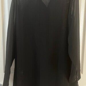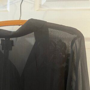 Black sheer tunic with embroidery details. Looks great with a cami, paired with jeans or leggings and tall boots. A unique piece worn casually or more formal. Excellent condition, worn a few times, made by Michel Studios.