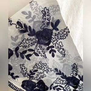White with blue lace/embroidery. Dress it up or dress it down. Perfect for spring and summer wear!