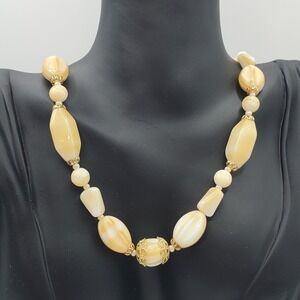 Boho Statement Beaded Necklace Women Layered Gold Tone Cream Yellow Festival