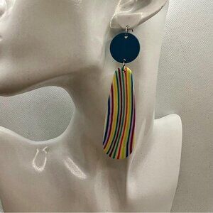 Boho Style Lightweight White Blue Soft Clay Statement Drop Earrings Stripes