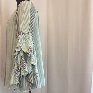 Elevate your style with this chic on or off-shoulder top featuring elegant ruffle sleeves. The striped pattern in black and white adds a classic touch, perfect for any occasion.