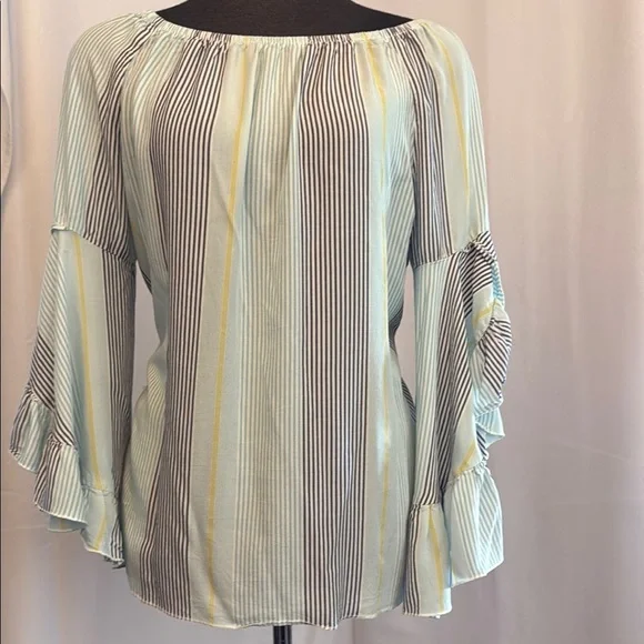 Boho Style Striped Off-Shoulder Ruffle Sleeve Top