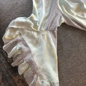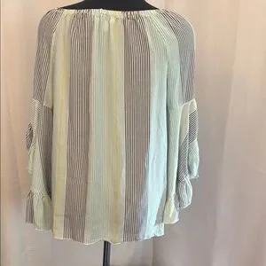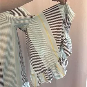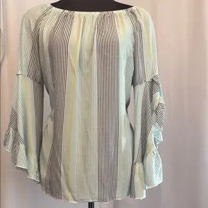 Elevate your style with this chic on or off-shoulder top featuring elegant ruffle sleeves. The striped pattern in black and white adds a classic touch, perfect for any occasion.