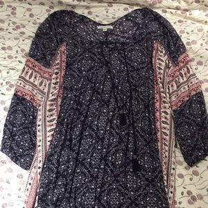 Beautiful boho style summer dress. In great condition, with a tie-front detail and lightly ballooned sleeves. Falls to around knee length in the back, a little shorter in the front.