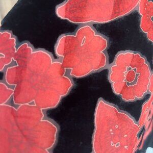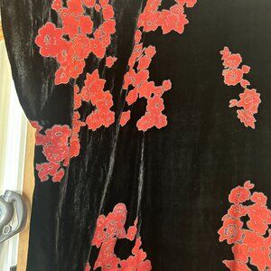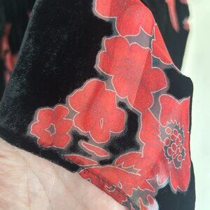 Boho Whimsigoth Black Velvet Burnout Kimono Duster • One Size •Red Floral Witchy