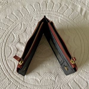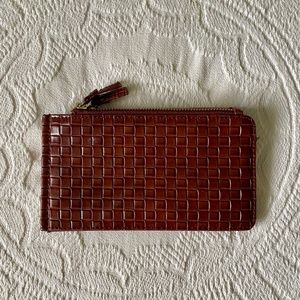 Stunning and unique boho wallet / clutch, with 2 zippered pockets and a centre section for plastic cards that closes shut with a magnetic snap. Measures 7.5” long x 4.5” tall. This sweet little thing is in perfect condition, unused. No stains or damage anywhere, zippers slide easily, the magnetic closure works like a charm. From smoke and pet free home.