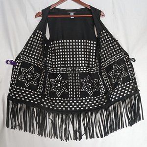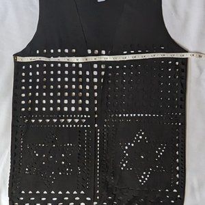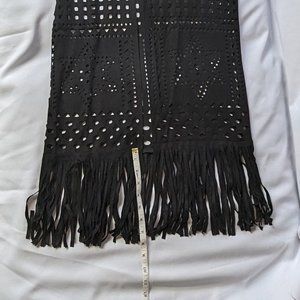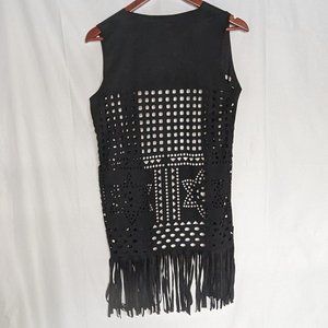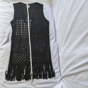 Boho long fringe vest with laser cuts black one size EUC Renato Balestra