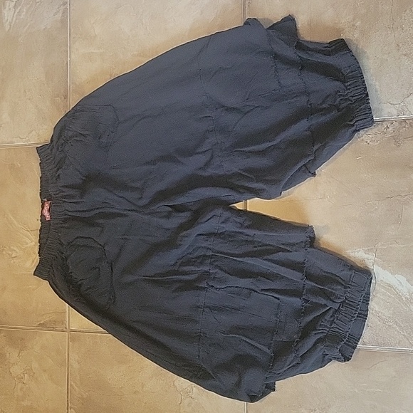 Balloon style pants, very loose fitting and comfortable with a cropped length- inseam approx 20"