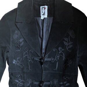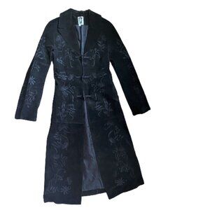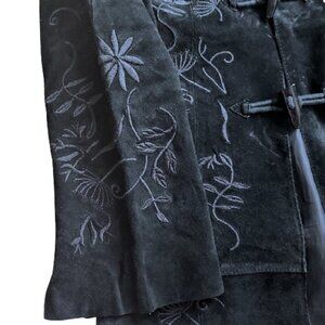 Boho vintage Y2K suede maxi coat with embroidery details and duffel horn closure