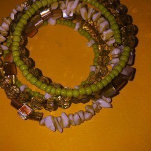 One piece set Wrap around bracelet 6 layers Different shades of green, plus white and clear beads Non stretchable