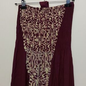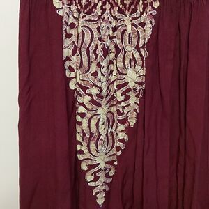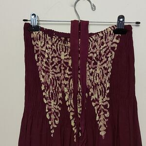 Bohemian style upholstered dress. Tie up neck. Super soft Rayon fabric. Down to waist is all elastic.