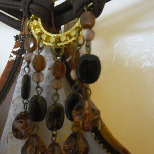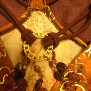 Boho-style shimmery halter neck with beaded detail. Small-medium size.