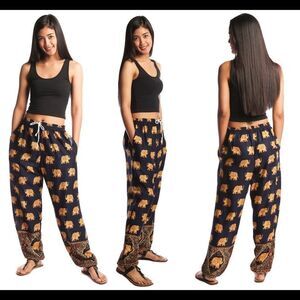 Bohotusk Royal Elephant Print Harem Pants Elasticated Smocked Waist Sz S/M