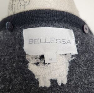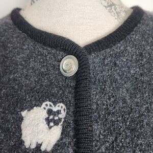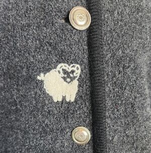 Dark Grey Felted Wool Knit Buttonup Traditional 'Trachten' Alpine Cardigan Sweater Jacket with front Patch pockets and cute little handstitched White Rams, by BELLESSA.