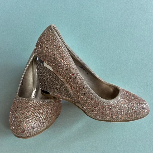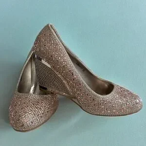 Champagne with pink hue dressy wedge