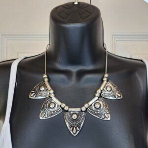 Bold Tribal Statement Necklace – Antique Silver Tone
