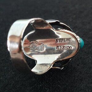 Bold Vintage 1920s Taxco Mexico Turquoise Sterling Silver Art Deco Poison Ring