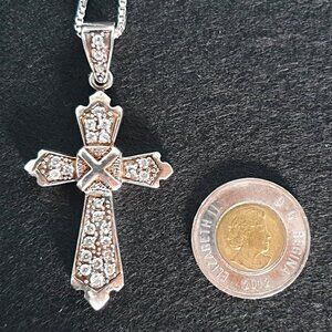 Bold Vintage 925 Sterling Silver CZ Crucifix Pendant & Box Chain Necklace