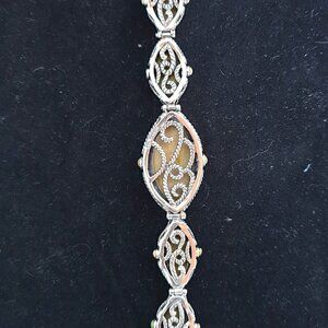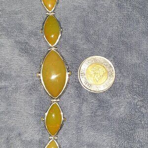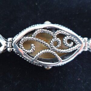 This amazing vintage bracelet is really a bold statement piece. It is hand-crafted from 925 sterling silver and features striking Green Gaspeite gemstones. Marked "Barse 925" on the back, this piece showcases intricate silverwork with ornate detailing that beautifully frames the vibrant marquise-cut Gaspeite stones. The deep green hues of the stones contrast elegantly against the silver, exuding a timeless and sophisticated charm.