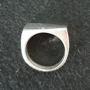 This bold vintage modernist sterling silver ring is a true statement piece of wearable art. Handcrafted from solid 925 silver and weighing 9.89 grams, it features a sleek, sculptural design with clean geometric lines that embody mid-century modern style.