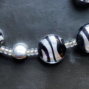 Crafted by the Venetian company Antica Murrina, this glass bead necklace stands out! Their are several spots where the clasp can be attached, allowing for wear at between about 7 and 8-1/2 inches. Marked Antica Murrina on the handtag. In like new condition. (d)