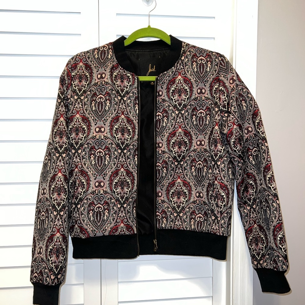 Embroidered jacket, is relatively thick. Has some sparkly thread in it. Never worn