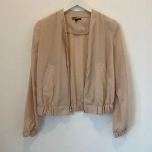 Pale pink, silky bomber jacket.