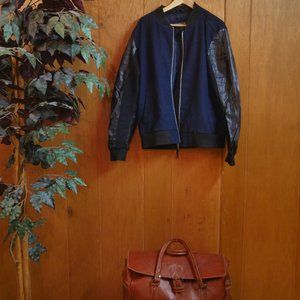 Bomber Jacket - L/G - Faux Leather Sleeves