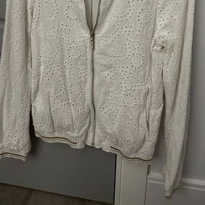 Bomber blanc effet dentelle et touche dorée, marque Promod et taille S