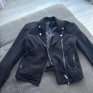 Bomber jacket in polyester, the leather details on the pockets are a little worn-out