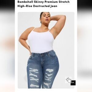 NWOT Torrid Bombshell Skinny Premium Stretch High-Rise Destructed Jean plus size 16