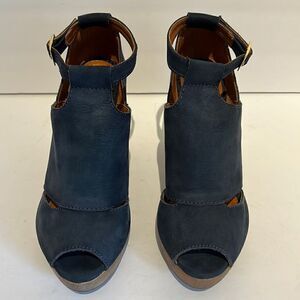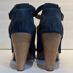 Bon-Bonite Blue Leather Peep Toe Heeled Platform Sandals Size 39. US 9