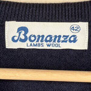 Vintage Bonanza Lambs Wool Mens Sweater Vest Size 42 Navy Blue