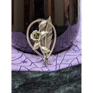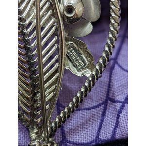 Bond Boyd Sterling Brooch Pin Rose with Leaves, Feather in Rope Loop