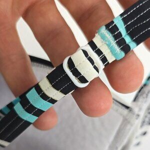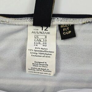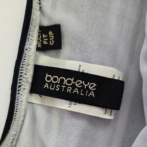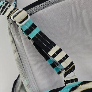 Excellent pre-owned condition, Bond-Eye Australia women's teal, black and white striped tankini swim top with padded cup and adjustable shoulder straps, size 8.