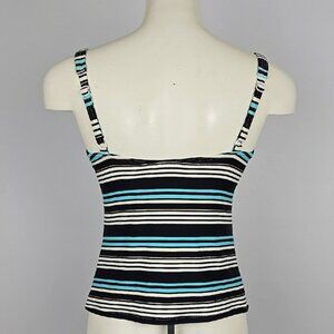 Bond-Eye Australia Women's Teal Black Striped Tankini Swim Top Padded Cups Sz 8
