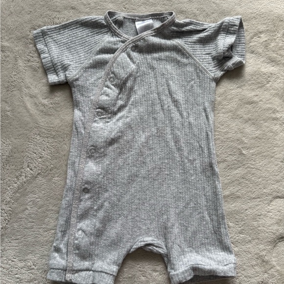 Cozy and stylish light gray ribbed shortie. Ideal for playtime and naps.