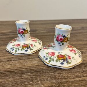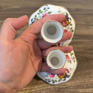 Please note there is a hairline crack on the bottom of one of the candle holders, which doesn’t affect usage and is not visible once item is styled. Please see pictures for details.