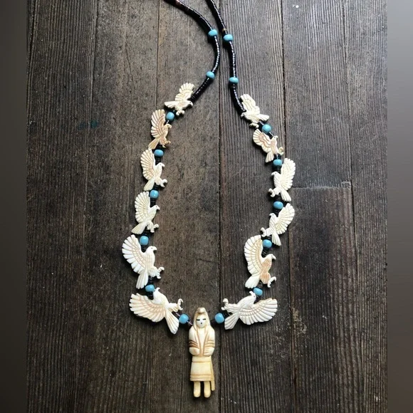 Bone carved Kachina necklace