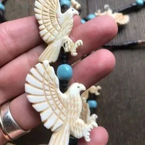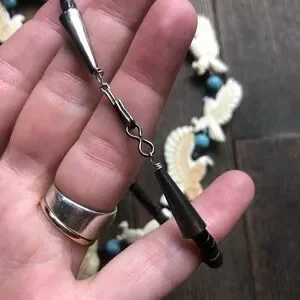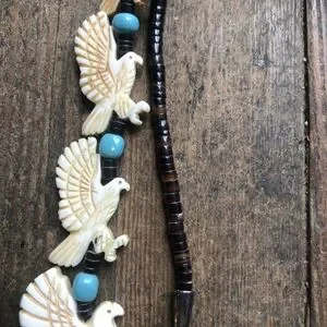 Hand carved in bone with genuine turquoise beads