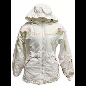 Bongo white winter ski jacket coat green pink detachable hood Sz S