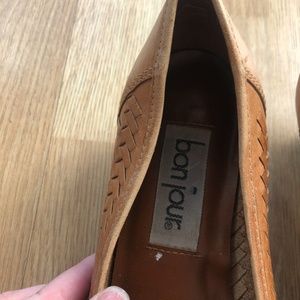 Bonjour Brown Fringed Basket Weave Kitten Heels
