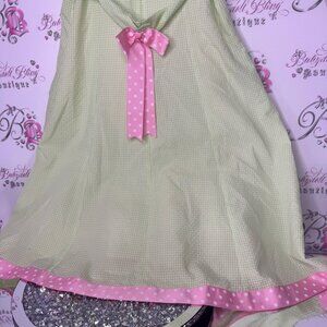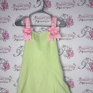 Bonnie Jean dress gingham lime green pink bow ribbon πŸŽ€ accents tie up belted
