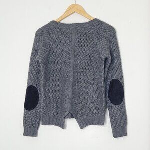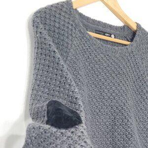 Bonobo City Women's Gray Black Drop Shoulder Elbow Patch Pullover Sweater Size S