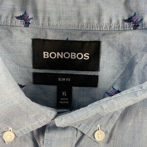 Bonobos Butterfly Print Slim Fit Button Down Shirt Men's XL Blue Cotton