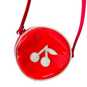 From renowned Parisian children’s brand Bonpoint, the Gomette bag is both chic and playful. It features a long, thin adjustable strap with a metal buckle, perfect for wearing on the shoulder or across the body. The front is adorned with Bonpoint’s iconic cherry logo in a bold neon orange-red patent finish.