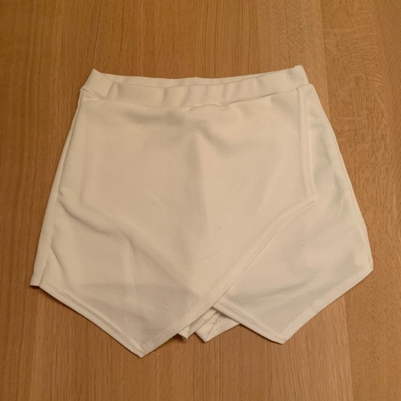 White skort with a fun overlapping detail. Runs tight, says 4 but fits in length more like a 2. Only worn once