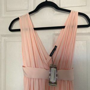 Brand new, never worn Boohoo plunge drape dress with a gorgeous slit down the front. Selling because this dress is more pink than I imagined