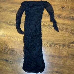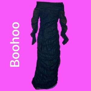 🌷 Boohoo🌷 Black Long Sheer Lace Sleeve Overlay Off Shoulder Dress