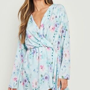 Boohoo DRAPE DETAIL WRAP MINI DRESS FLORAL PRINT